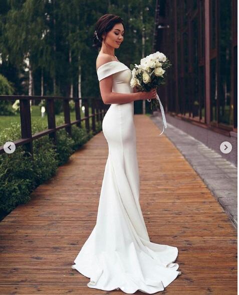 Off Shoulder Mermaid Wedding Dress Backless Wedding Dress Bridal Dress