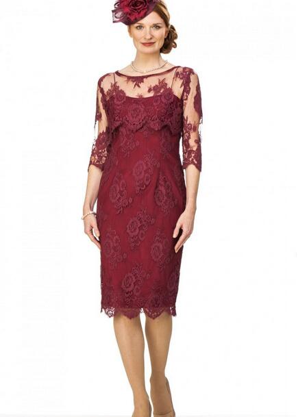 New Vintage Burgundy Lace Mother's Dresses Elegant Scoop Half Long Sleeves Mother Of The Bride Dresses Plus Size Wedding Party Gowns