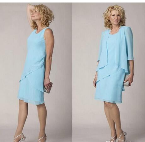 Knee Length Short Light Sky Blue Mother of the Bride Dresses with Jacket Simple Formal Tiered Mother of the Groom Gown Plus Size