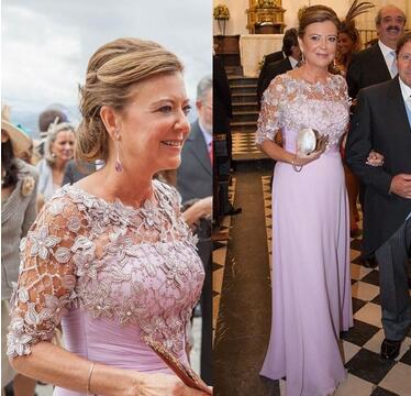 Lavender Lace Mother Of The Bride Dresses With Half Sleeves Sheer Bateau Neck Wedding Guest Dress Chiffon Plus Size Prom Evening Gowns