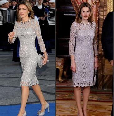 Gray Mother Of The Bride Knee Length Dresses 2019 Elegant Long Sleeve Lace Groom Mother Gowns Robe De Soiree Formal Prom Outfits