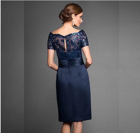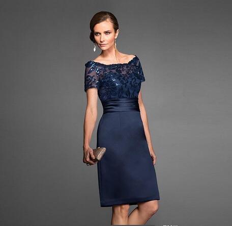 Navy Blue Vintage Mother Of The Bride Dresses Elegant Knee Length Zipper Back Short Wedding Party Gowns